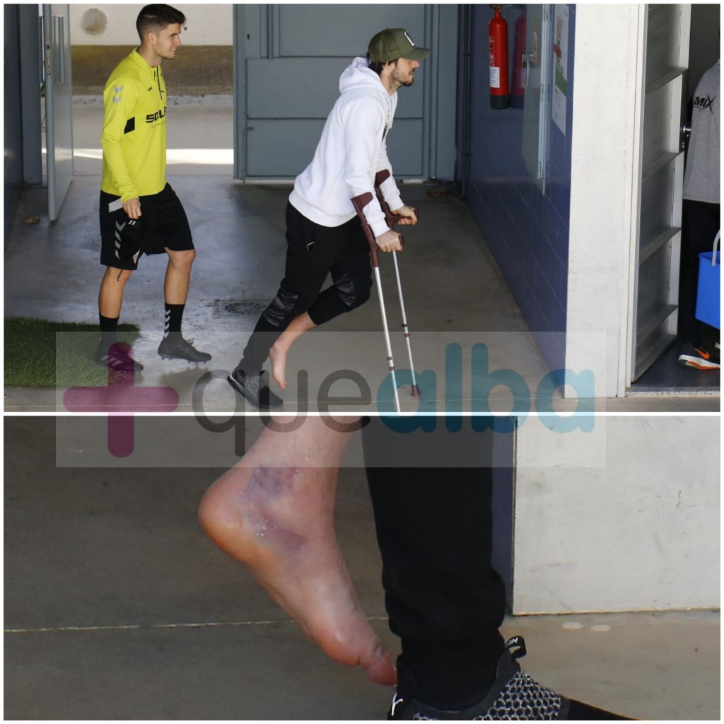 Esta mañana hemos captado la imagen de cómo está su tobillo, durante el paso del jugador por la Ciudad Deportiva.
