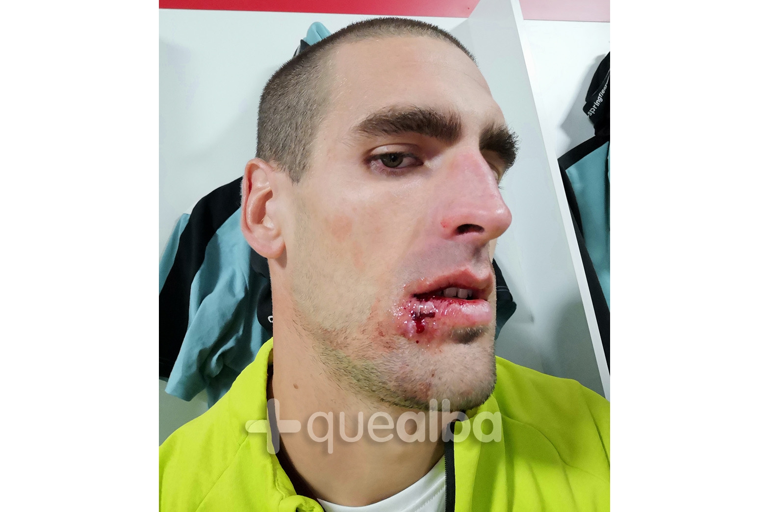 Tras el partido nos explicaba que está mareado y no puede mover la mandíbula, aunque tendrá que esperar a una placa para conocer el alcance de la lesión.