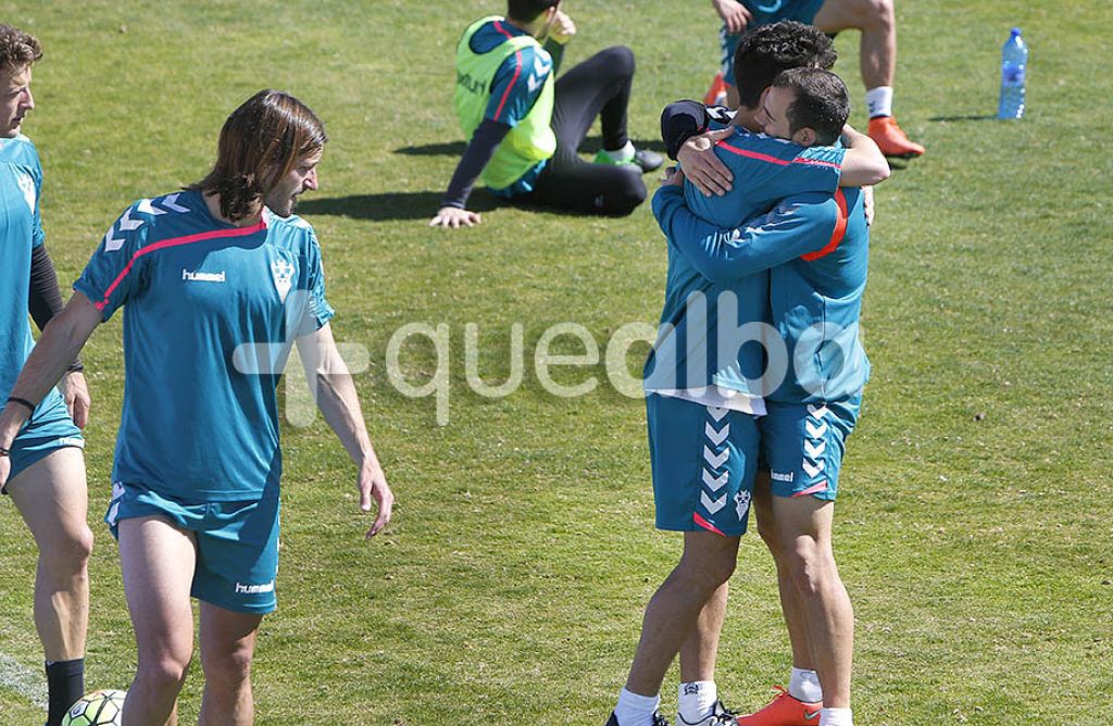 En pleno entrenamiento del Alba veíamos este abrazo entre Diego Benito y César Díaz. Los jugadores son una piña y el vestuario está dispuesto a darlo todo para conseguir el objetivo. Seguro que logramos la permanencia. #ElAlbaTeNecesita.