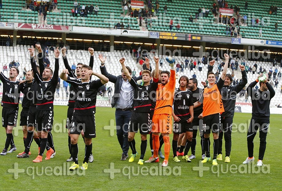 112 Así han celebrado los jugadores del Alba, frente a la grada donde estaban los aficionados del Albacete Balompié en el Arcángel, su importantísima victoria. Sonrisas y lágrimas en ese momento.