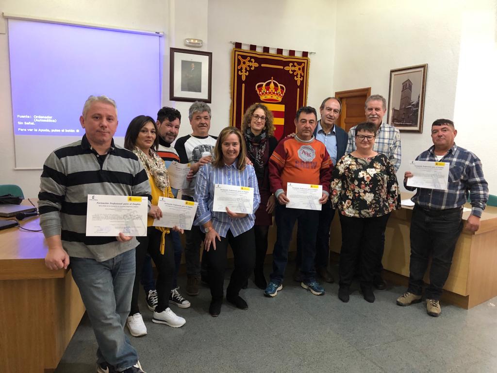 El delegado provincial de Economía, Empresas y Empleo, Nicolás Merino, y la alcaldesa de Villamalea, Ana Teresa García, han entregado los certificados de profesionalidad a los 8 alumnos del Programa de Recualificación y Reciclaje (RECUAL), realizado en el Centro Dotacional de esta localidad de La Manchuela, especializado en operaciones auxiliares de revestimientos continuos en construcción, con un presupuesto de más de 92.000 euros.