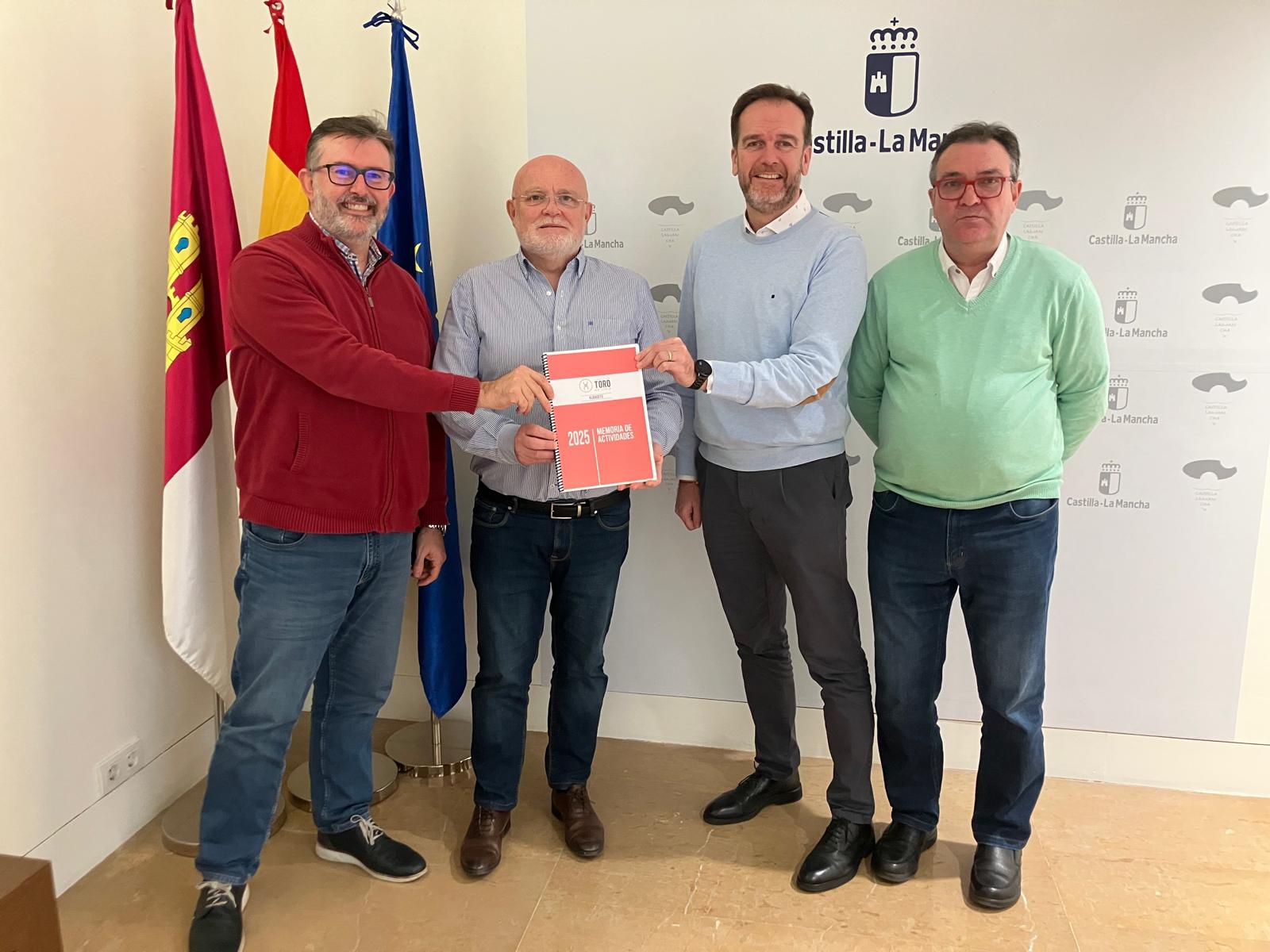 El delegado de la Junta de Comunidades de Castilla-La Mancha en Albacete, Pedro Antonio Ruiz Santos, se ha reunido con diferentes integrantes del Capítulo de la Fundación Toro de Lidia en Albacete para conocer el balance que la entidad realiza de su actividad en 2025 y que, este año, según explicó su presidente, Antonio Martínez, a Ruiz Santos, se ha basado en la consolidación de la tauromaquia como referente cultural, artístico y social en la ciudad de Albacete.