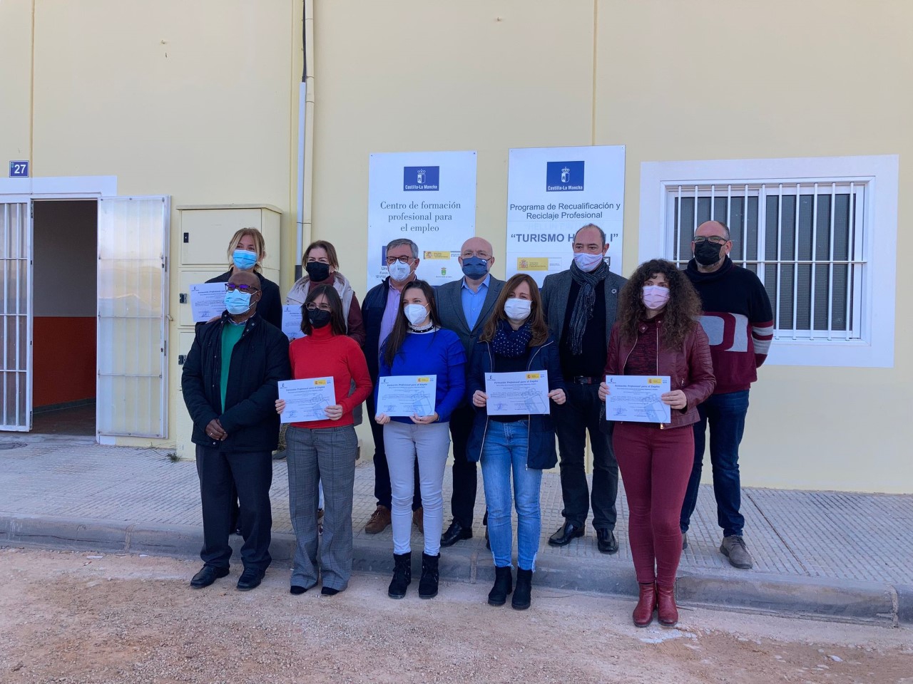 El delegado de la Junta, Pedro Antonio Ruiz Santos así lo ha trasladado junto con el alcalde del Ayuntamiento de Hellín, Ramón García, durante la entrega de certificados de profesionalidad a los 8 alumnos del Programa de Recualificación y Reciclaje Profesional (RECUAL), “Hellín Turismo I”, especializado en dinamización turística y que ha contado con una subvención de 96.400 euros para este Programa de Formación Dual por el Empleo.
