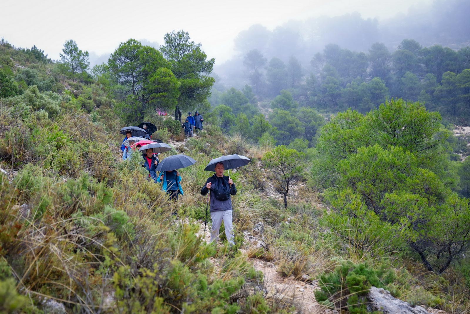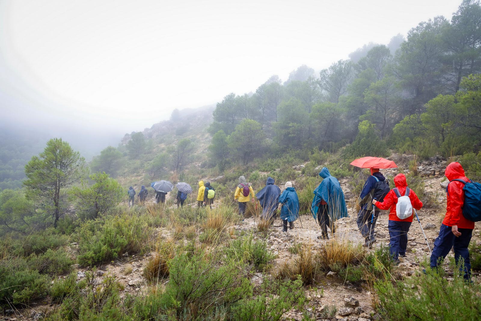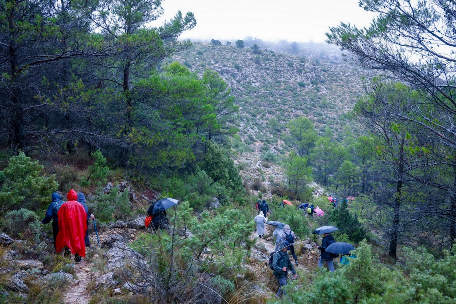 Empezaron sin lluvia, aunque según iban avanzando y adentrándose en la niebla empezó a llover, no con mucha intensidad, pero sí constante.