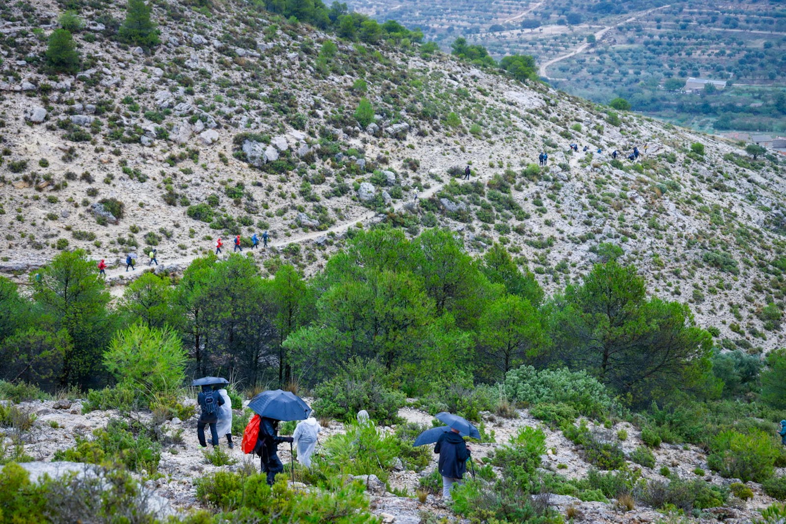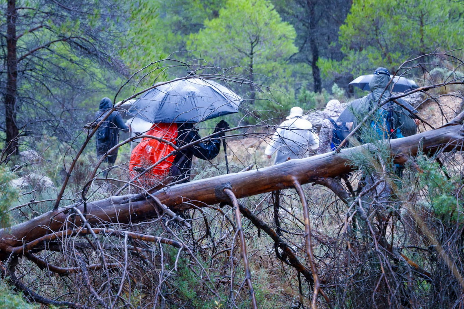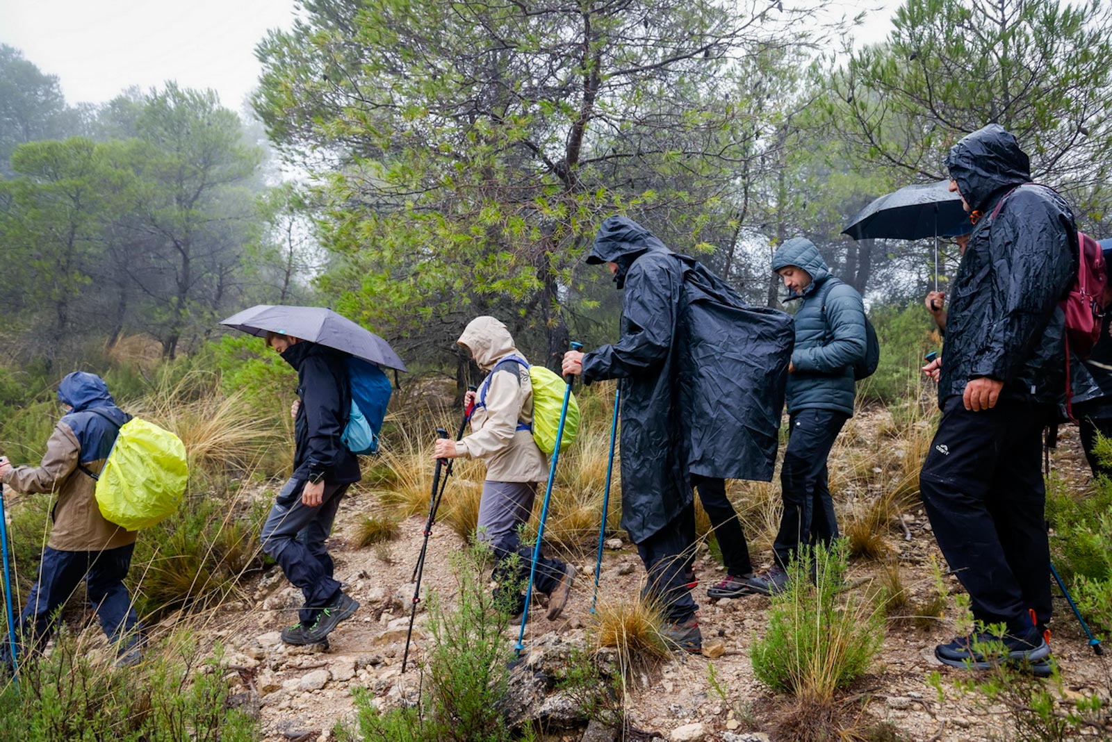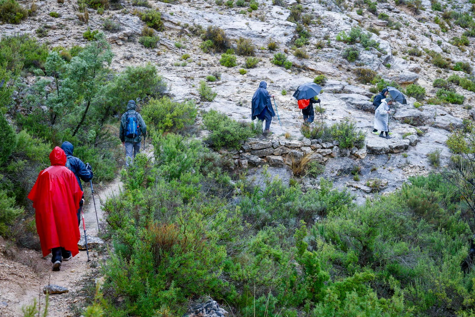 Empezaron sin lluvia, aunque según iban avanzando y adentrándose en la niebla empezó a llover, no con mucha intensidad, pero sí constante.