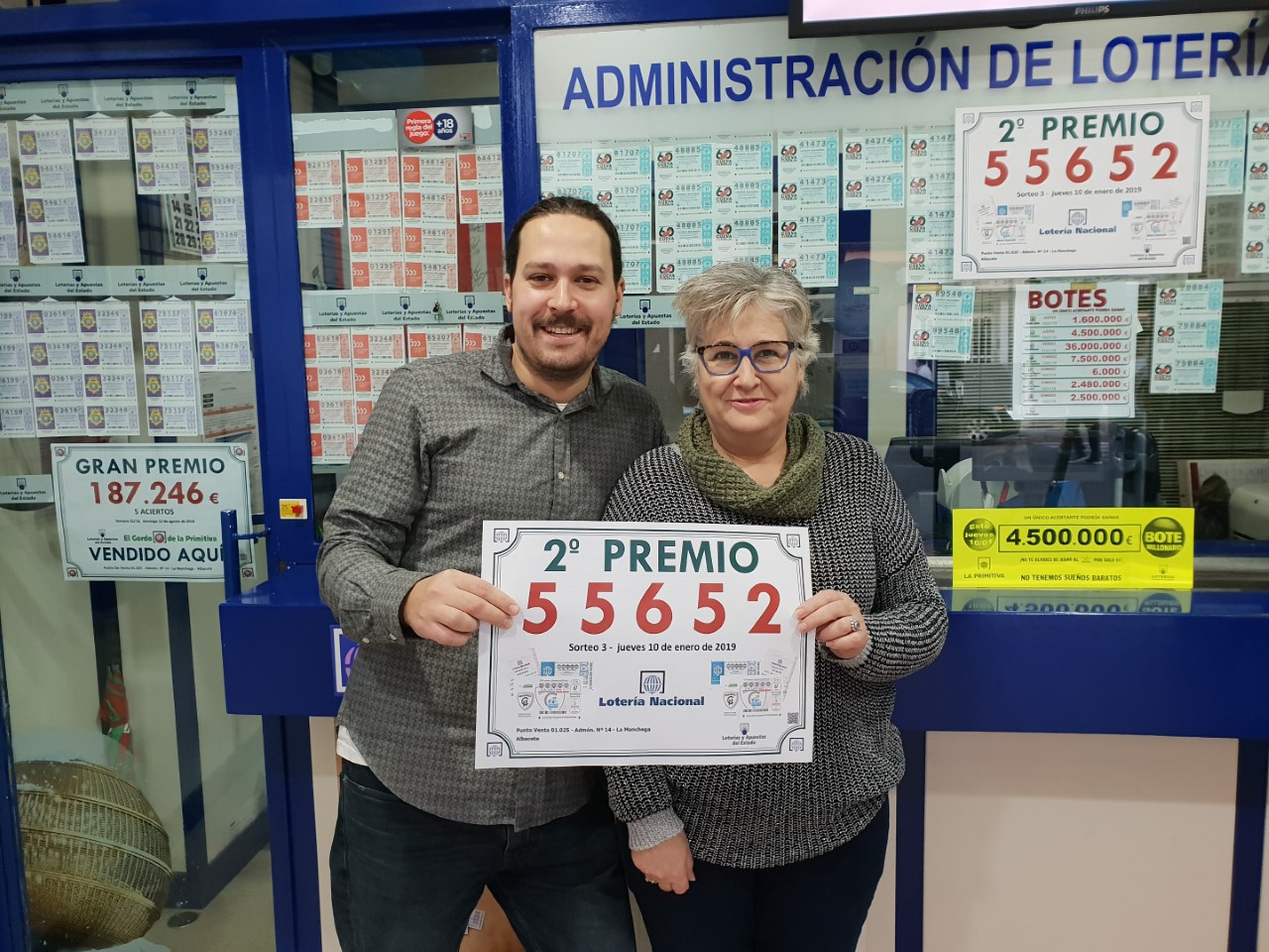 Dicho número ha sido repartido en cuatro localidades; Hospitalet de Llobregat y Manresa (Barcelona), Bueu (Pontevedra), y Albacete capital, concretamente en el Punto de Venta 01.025, Administración nº 14, ubicado en la c/ Hermanos Giménez, 24.