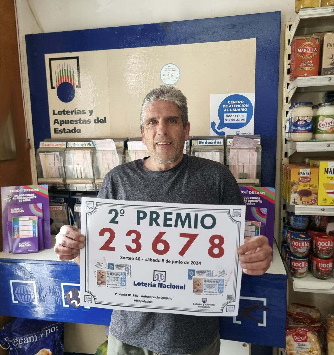 En el Sorteo nº 46, celebrado hoy 8 de junio 2024, el Segundo Premio se ha repartido en varias localidades, siendo una de ellas Villapalacios. El número 23678 ha sido agraciado con 120.000 € a la serie, premiado en el Punto de Venta 01.785 de esta población, sito en la calle Ramón y Cajal nº 15. Este premio se une a sus destacables, sumado al Pleno al 15 de “La Quiniela” que entregó hace unos años.