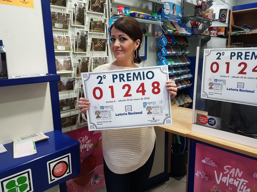 El sorteo de la Lotería Nacional de este sábado ha llegado a Albacete con el número 01248, con un importe de 250.000 euros a la serie. Ha sido repartido en varias localidades y una de ellas Albacete, en el punto de venta 1.180, de María Carmen Roldán Tejada.