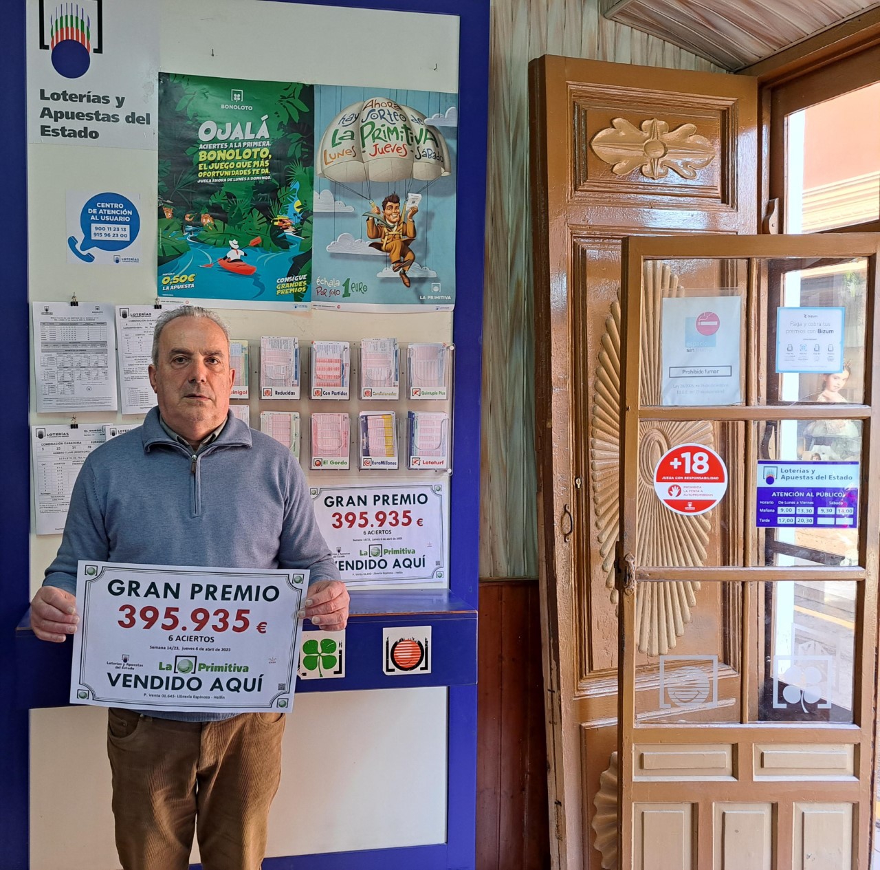 En los sorteos de La Primitiva y Lotería Nacional del pasado jueves 6 de abril de 2023, han aparecido dos premios importantes. El boleto de La Primitiva de 6 aciertos ha sido validado en el Punto de Venta Mixto 01.645 de Hellín, sito en c/ Soledad N.º 12, con un importe de 395.935,01 euros.