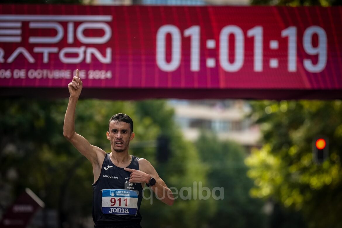 El marroquí Abderramane Aferdi (Atletismo Novés) venció este domingo en la XXVII Media Maratón Ciudad de Albacete, trigésimo sexta prueba del año en el XXIII Circuito Provincial de Carreras Populares de la Diputación Provincial, quedándose a sólo 4 segundos del récord del keniano Silas Sang, establecido en 2008 con 1.01.11.