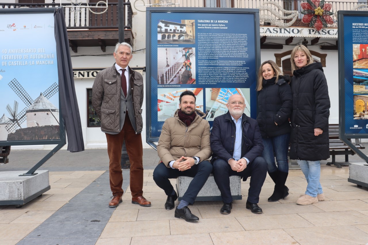El Gobierno regional y el Ayuntamiento de Tarazona de la Mancha han inaugurado hoy, la exposición itinerante del 40 Aniversario del Estatuto de Autonomía de Castilla-La Mancha, que permanecerá en la Plaza Mayor de este municipio albacetense hasta el próximo 5 de febrero, siendo la primera muestra en la provincia de Albacete, en este nuevo año 2023.