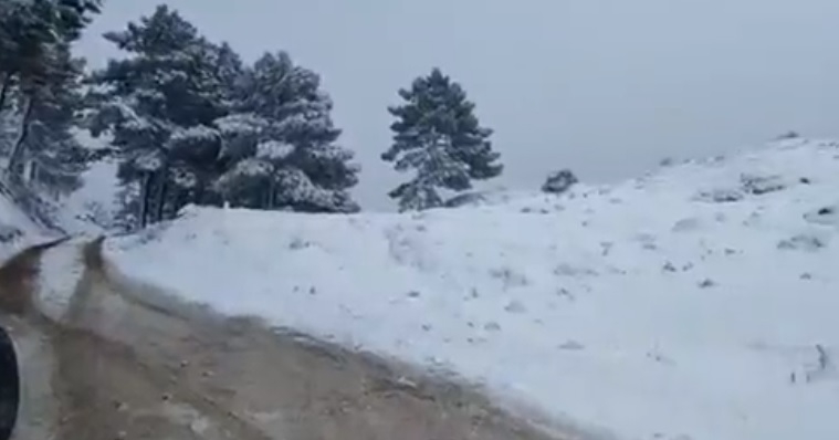 Esta mañana también seguía nevando sobre algunos puntos de la sierra, en Paterna del Madera.