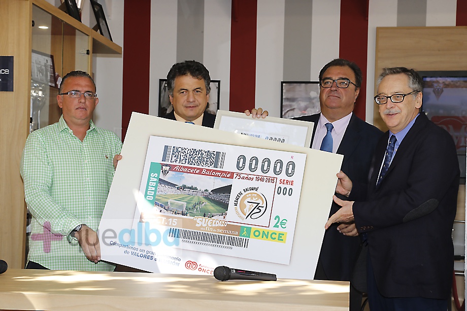 El Albacete Balompié será protagonista del Cupón de la ONCE del próximo 3 de octubre. Es una de las iniciativas por su 75 Aniversario. El cupón ha sido presentado este mediodía, en el stand del Alba en el Recinto Ferial.