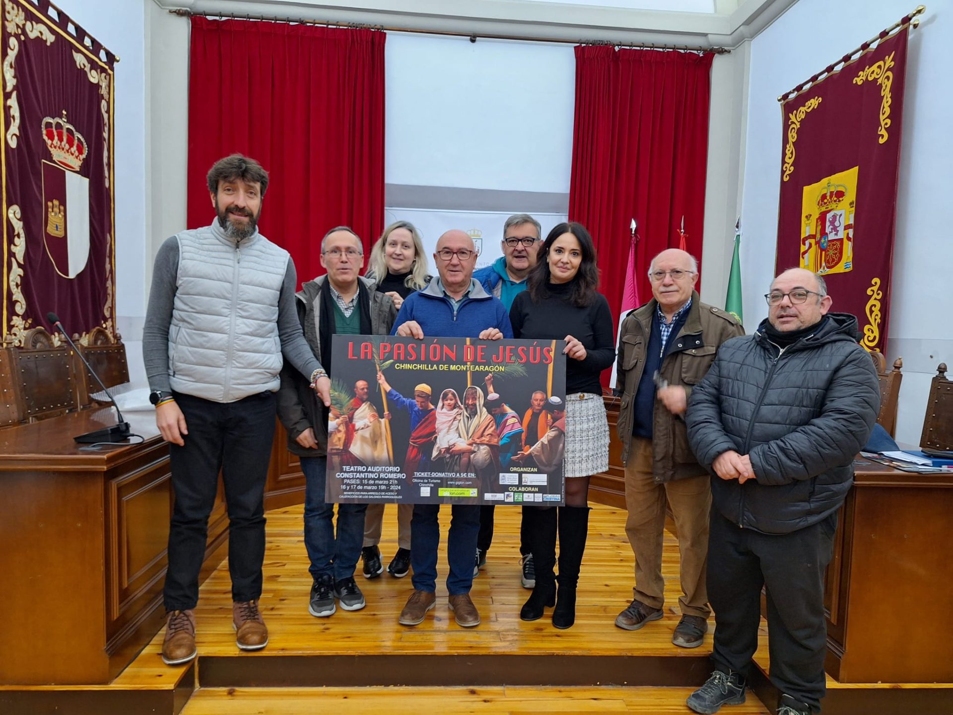 Esta mañana en el salón de plenos del Ayto de Chinchilla se ha presentado una nueva entrega de la pasión de Jesus 2024 con la presencia de el alcalde, Francisco Morote; la concejala de Cultura, Silvia Abellán; el párroco de la Ciudad, Javier Valero; y una representación de los actores se ha puesto de manifiesto la ilusión con la que se está preparando la representación para los dias 15, 16 y 17 de Marzo.