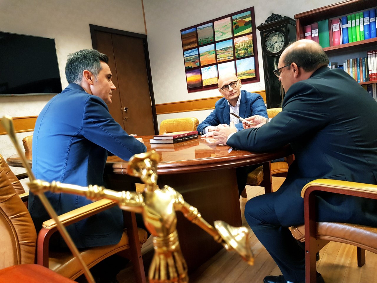Emilio Soria-Olivas, Catedrático de la Universidad de Valencia, ha visitado este viernes la Diputación de Albacete. Acompañado del Jefe del Servicio de Modernización Administrativa y Tecnologías de la Información de la institución provincial, José Joaquín de Haro, ha sido recibido por el vicepresidente I, Agustín Moreno, que ha tenido ocasión de hacerle entrega de dos libros especiales sobre el sector cuchillero de nuestra tierra y de una navaja artesana pero, sobre todo, de compartir con ambos los detalles de una ‘alianza’ que abre nuevas e interesantes vías de trabajo para esta ‘casa’ provincial en su apuesta decidida por la modernización de la Administración a través de la tecnología.