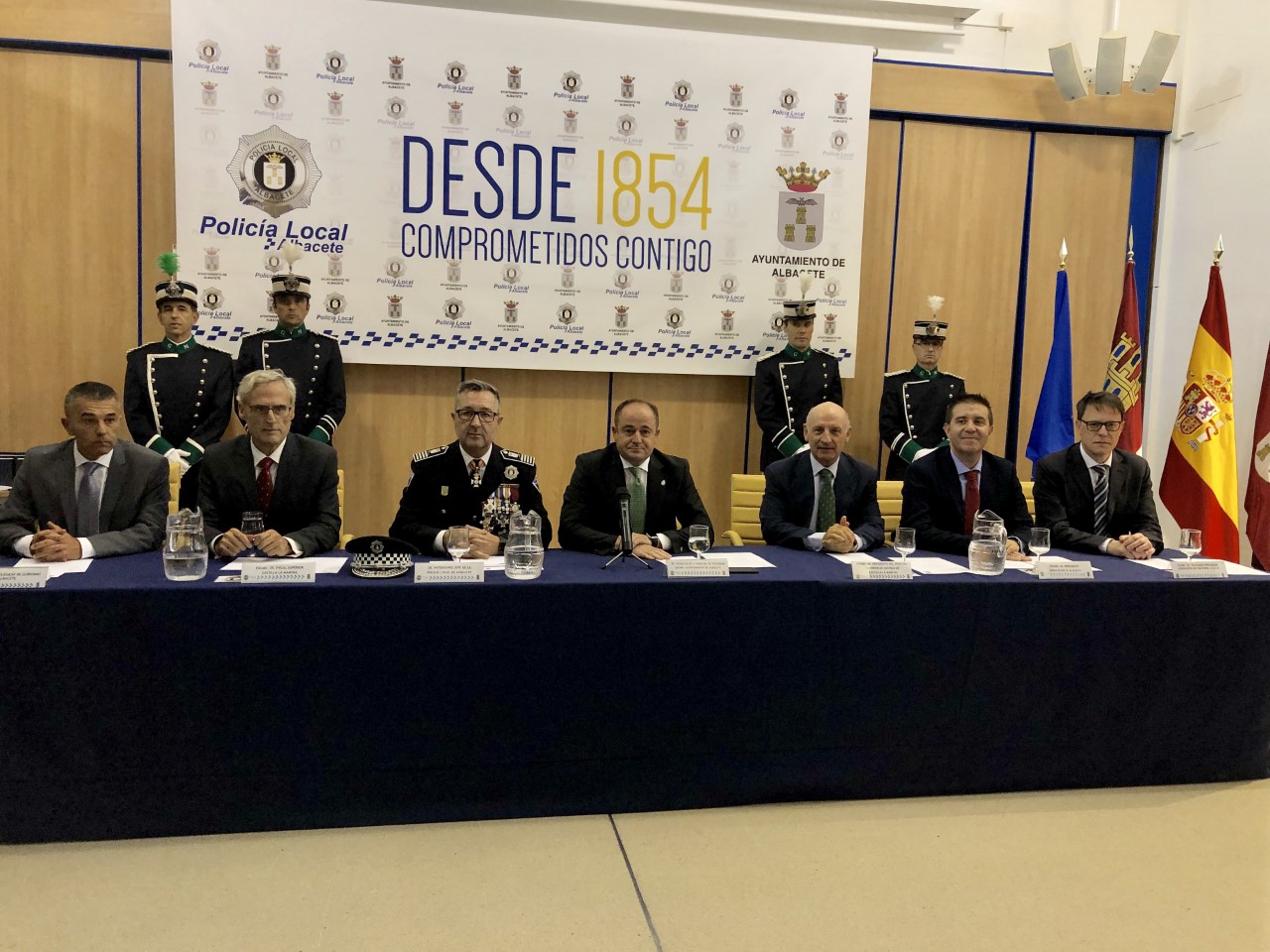 Por otra parte, el intendente en jefe de la Policía Local de Albacete, Pascual Martínez destacó algunos de los hechos y logros más significativos conseguidos por el Cuerpo durante el último año. Entre los que figuran, expuso: el avance en la permanente modernización del Servicio como una Policía del siglo XXI; la mejora de los resultado en la Feria, competiciones, eventos y actos; el fortalecimiento de la colaboración con los Servicios Municipales, las Fuerzas y Cuerpos de Seguridad del Estado, Servicios Regionales, Provinciales y Locales; la prestación de auxilio y colaboración a jueces y fiscales; el trabajo coordinado con la Agrupación Municipal de Protección Civil
