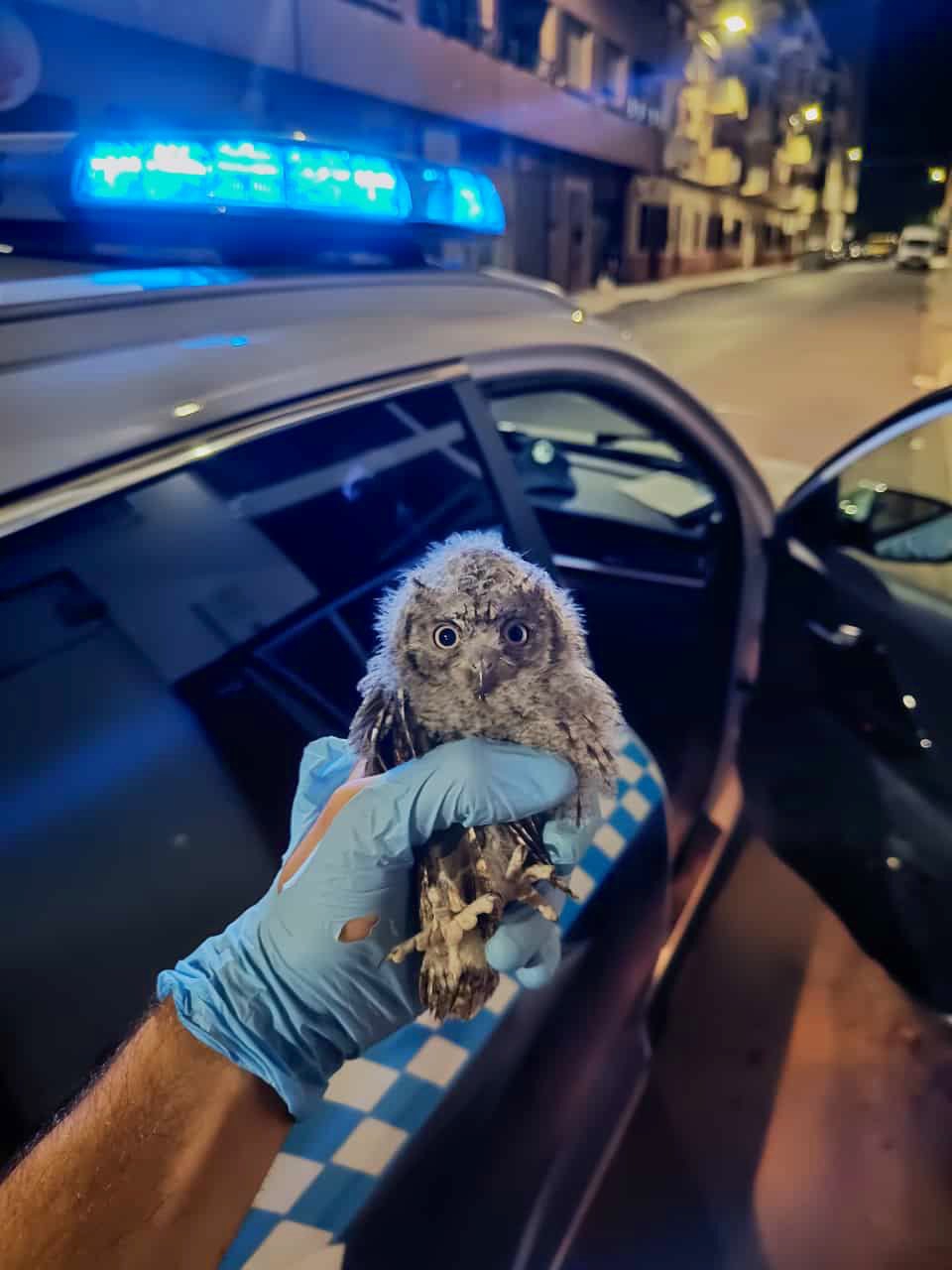 «Anoche no patrullamos solos… Encontramos esta lechuza que no podía volar y la llevamos al centro de de recuperación de fauna silvestre». Así informa la Policía Local hoy, en sus redes sociales, del incidente más curioso de este viernes noche en Albacete.