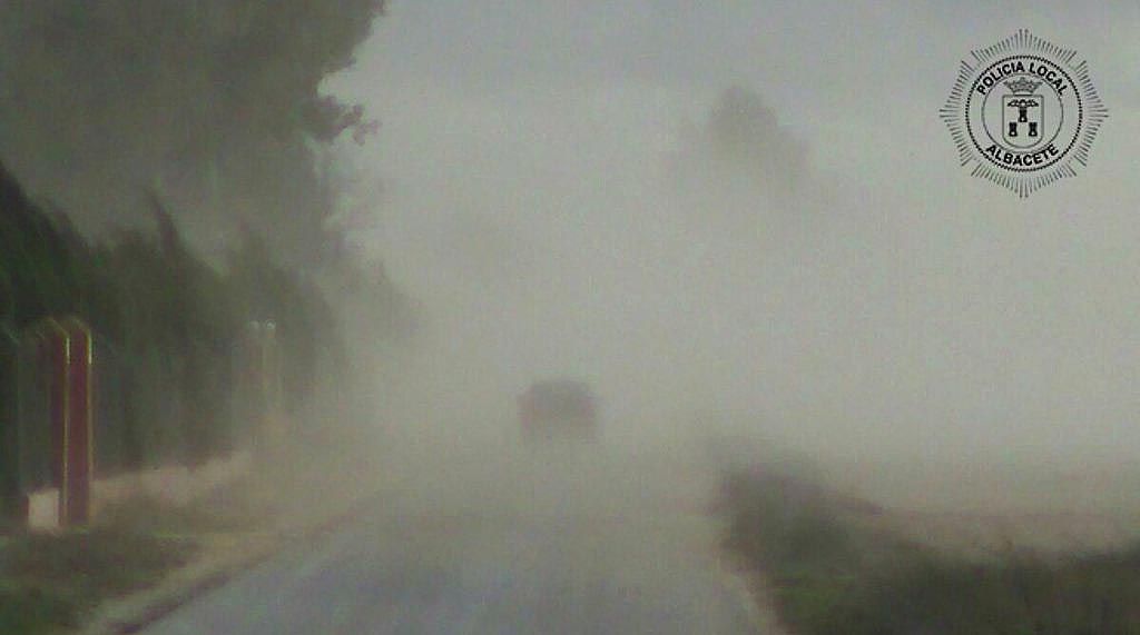 Dos patrullas de la Policía Local están controlando Casas Viejas, según informa la Policía en su cuenta de Twitter, por los problemas de visibilidad como consecuencia de la arena que levanta el viento y que llevamos denunciando desde ayer en MasqueAlba por las quejas vecinales que hemos recibido.