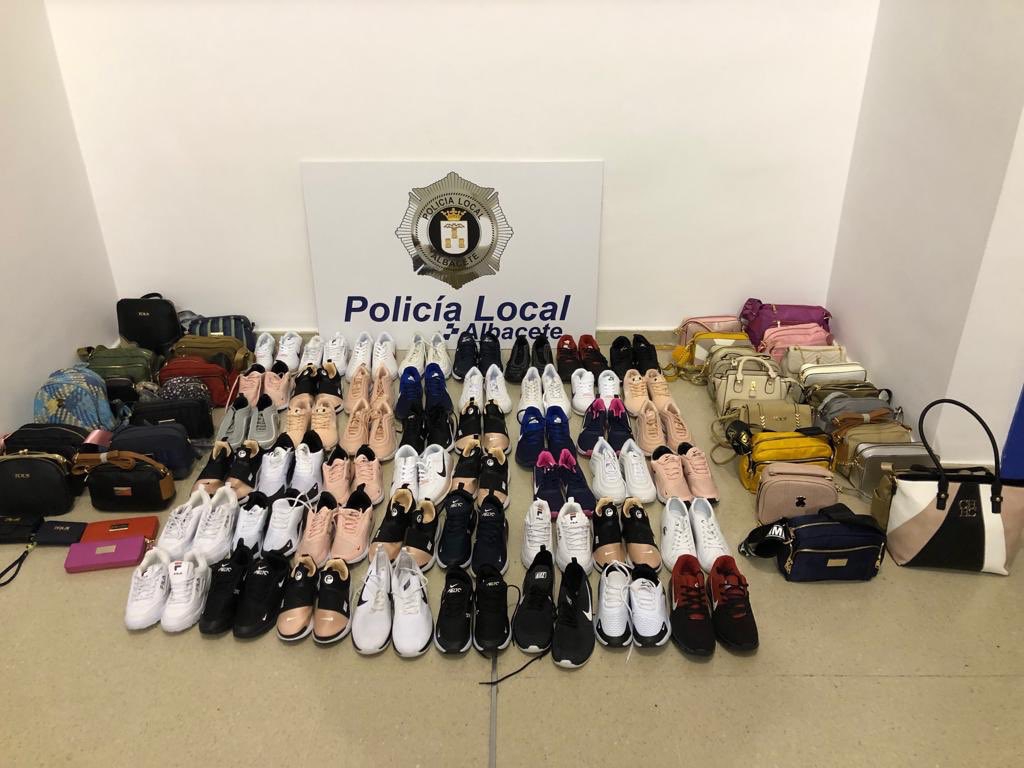 La Policía Local de Albacete ha vuelto a incautar un gran número de productos falsificados del top manta que suele venderse en el Paseo de la Feria.