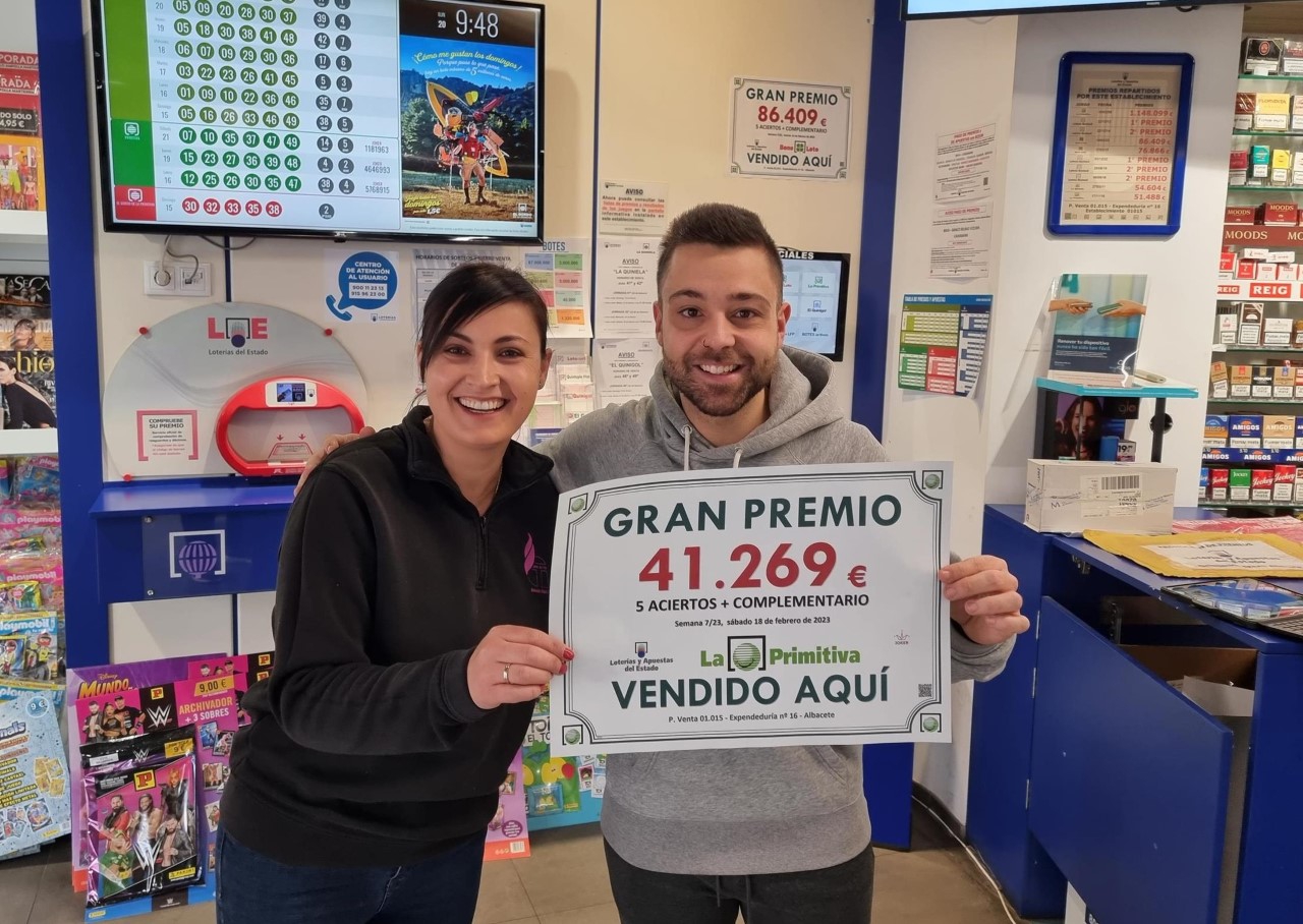 En el Sorteo 21 de Lotería Primitiva celebrado el sábado 18 de febrero, aparecieron cinco premios de Segunda Categoría (5+C aciertos), siendo uno de ellos validado el Punto de Venta 01.015, sito en Avda. Ramón Menéndez Pidal nº 4 de Albacete, y cuyo importe fue de 41.268,77 euros.