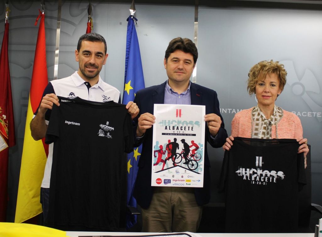 La prueba deportiva ha sido presentada esta mañana por el concejal de Deportes del Ayuntamiento de Albacete, Francisco Navarro, la diputada provincial de Deportes, María Victoria Leal, y el presidente del Club CASMAN Triatlon Albacete, José Fresneda.