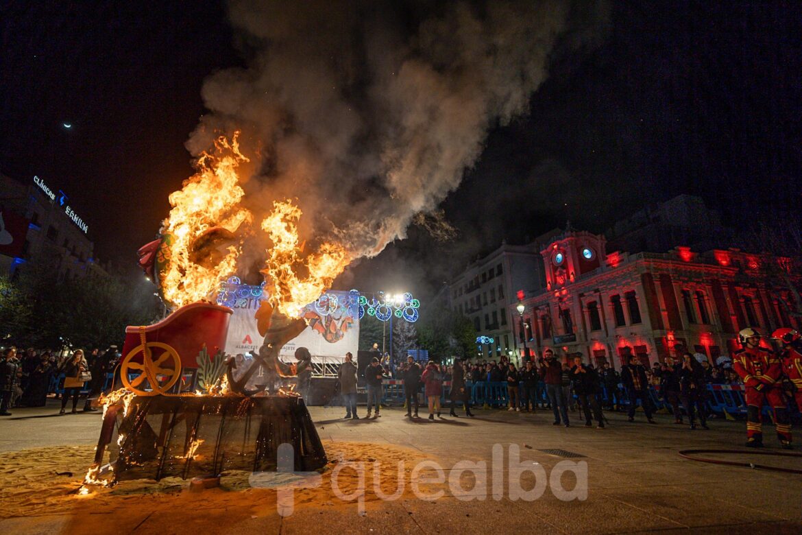 Después se procedía a la Quema, con algún que otro inconveniente porque ha costado que prendiera -hasta ha tenido que ayudar un bombero-. El Aula de Teatro de la Universidad Popular de Albacete procedía al Juicio y la Sentencia a la Sardina y a su quema, a cargo de los miembros del Grupo ‘La Farándula’, pregonero de los Carnavales de Albacete, con un recuerdo muy especial a ‘Zapaterito’.