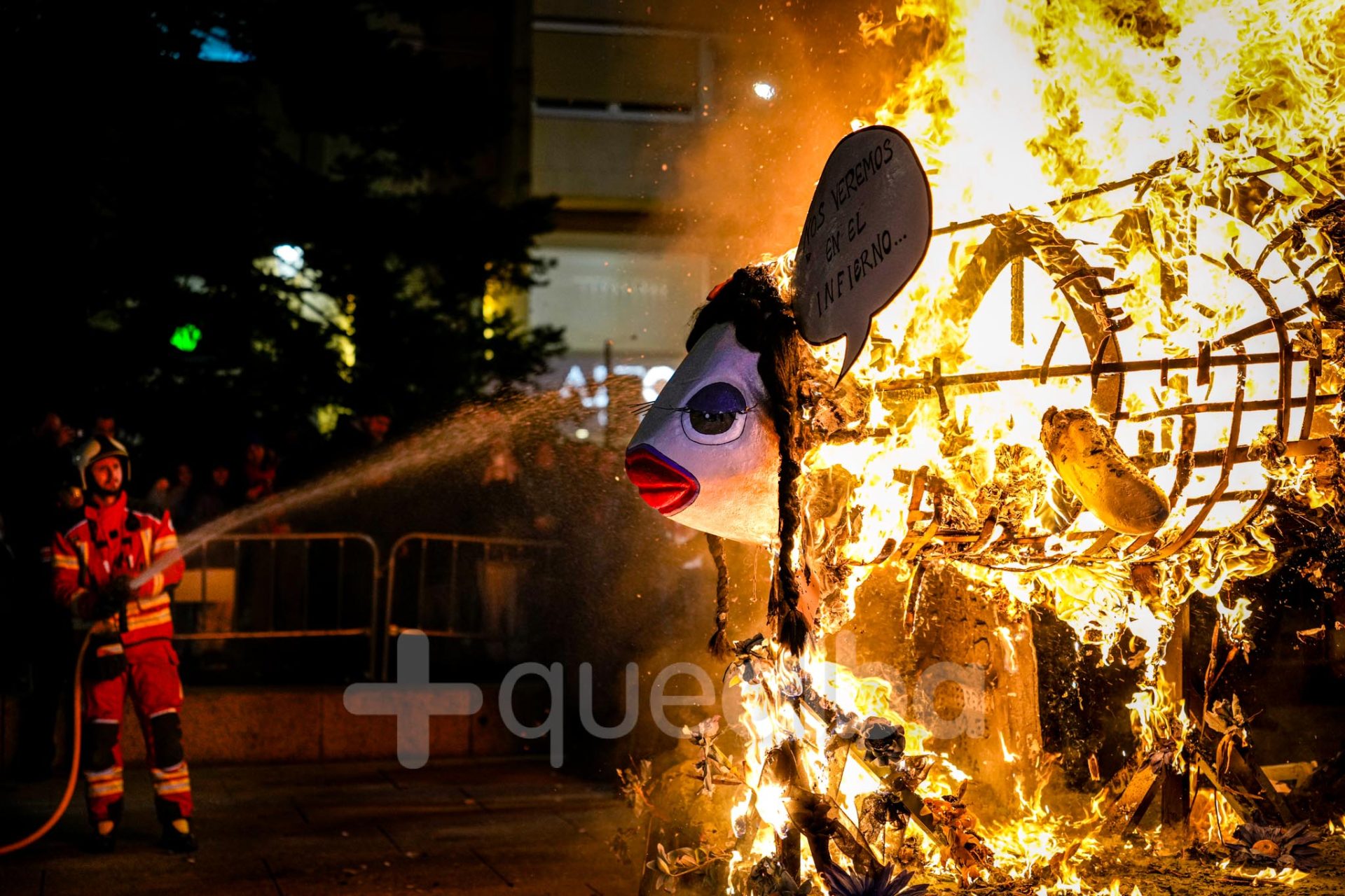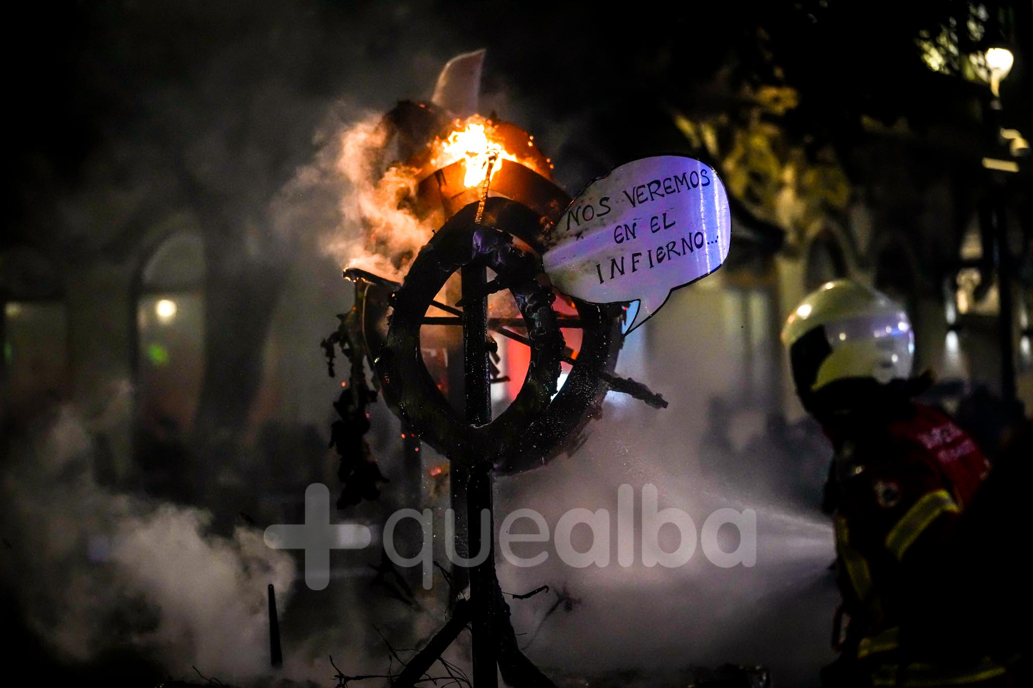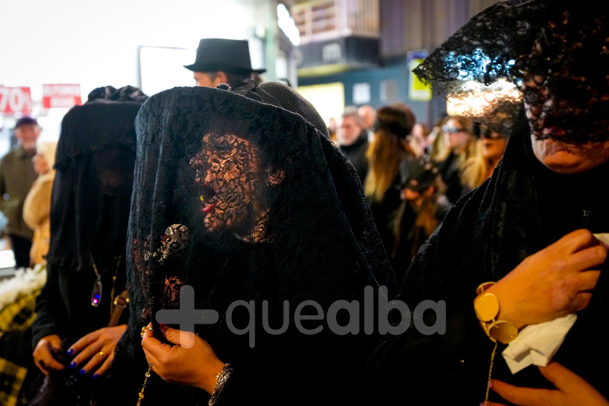 Después del velatorio en la calle San José de Calasanz, donde viudas y acompañantes han podido comerse unas pulgas de sardina para aliviar el duelo, el cortejo fúnebre y festivo ha recorrido la calle Ancha hasta llegar a la Plaza del Altozano, donde se ha celebrado la sentencia y la quema de la Sardina.