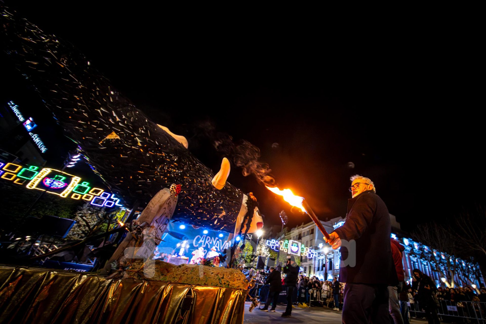 Manuel Serrano ha asistido en el Altozano a los actos de cierre del Carnaval, con el Juicio, Sentencia y Quema a la Sardina donde ha actuado la Compañía La Brava.