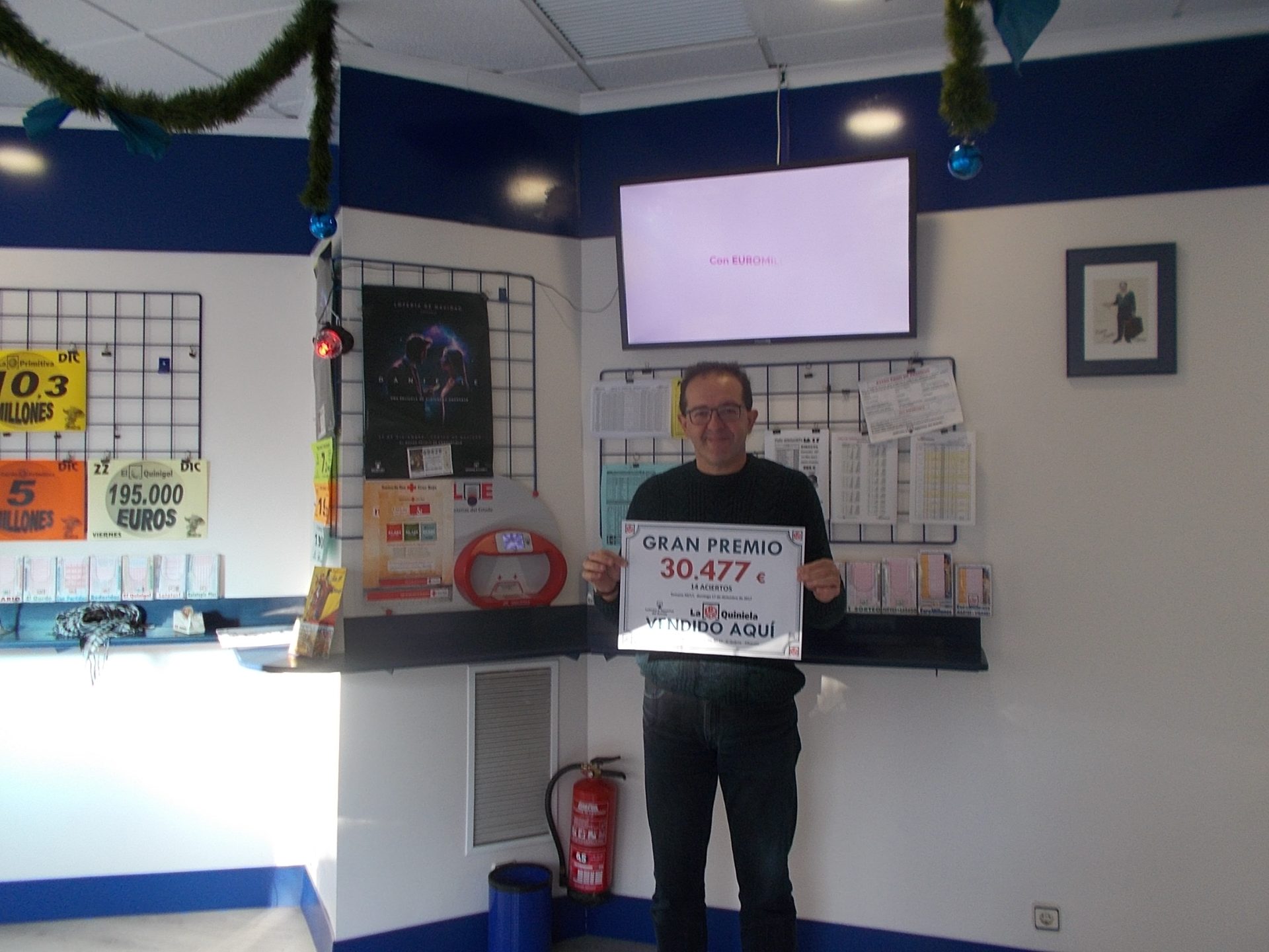La Administración de Loterías numero 17, “EL QUIJOTE” está en racha, si el pasado sábado 9 de diciembre un apostante con 5 aciertos en un boleto múltiple en el sorteo de la Lotería Primitiva se embolsaba casi dieciocho mil Euros, en concreto 17.949.17 Euros, este domingo otro apostante con un boleto ganador de 1ª categoría, 14 aciertos, en La Quiniela se va a llevar nada más y nada menos que más de treinta mil euros, en concreto 30.561.25 Euros, de los cuales 30.477.41 corresponden al premio de 14 aciertos y el resto al resto de aciertos al tratarse de un boleto múltiple. El reparto completo de premios de esta jornada de Quiniela en: http://www.loteriaelquijote.com/comprobar-quiniela/comprobar-quiniela.html