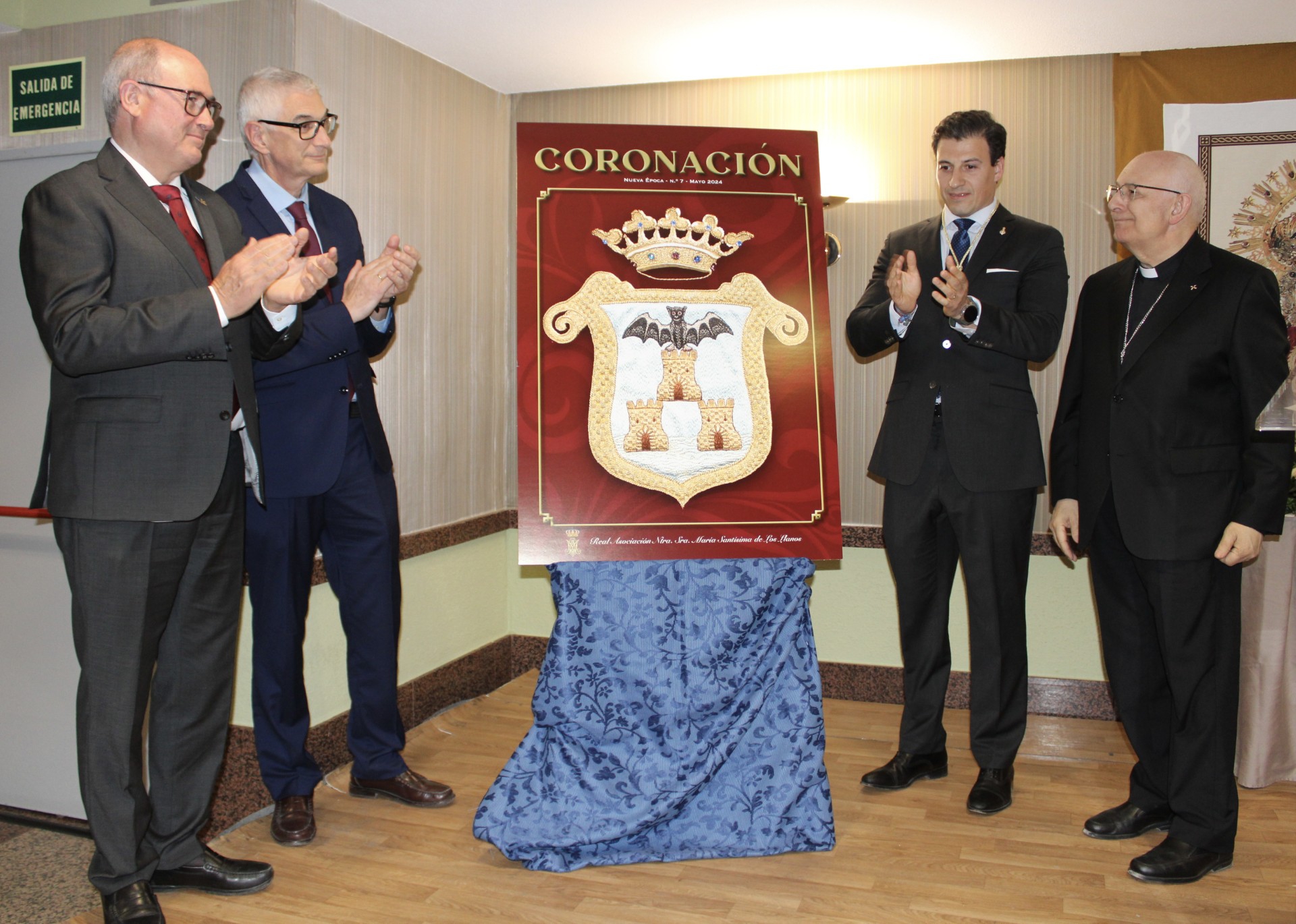 El segundo teniente de Alcalde del Ayuntamiento, Alberto Reina, ha puesto en valor el enorme cariño y la devoción que los albaceteños sienten por la Patrona de la ciudad durante su asistencia a la presentación de la portada número VII de la revista ‘Coronación’, titulada ‘Nueva época’, de la Real Asociación de la Virgen de Los Llanos, acompañado por su presidente, Antonio Fernández-Pacheco, el obispo emérito de la Diócesis de Albacete, Ángel Fernández, la concejala del Equipo de Gobierno, Gala de la Calzada, el director general de la Sociedad San Pablo España, Miguel Carmen Hernández, otros miembros de la Corporación Municipal y resto de autoridades.