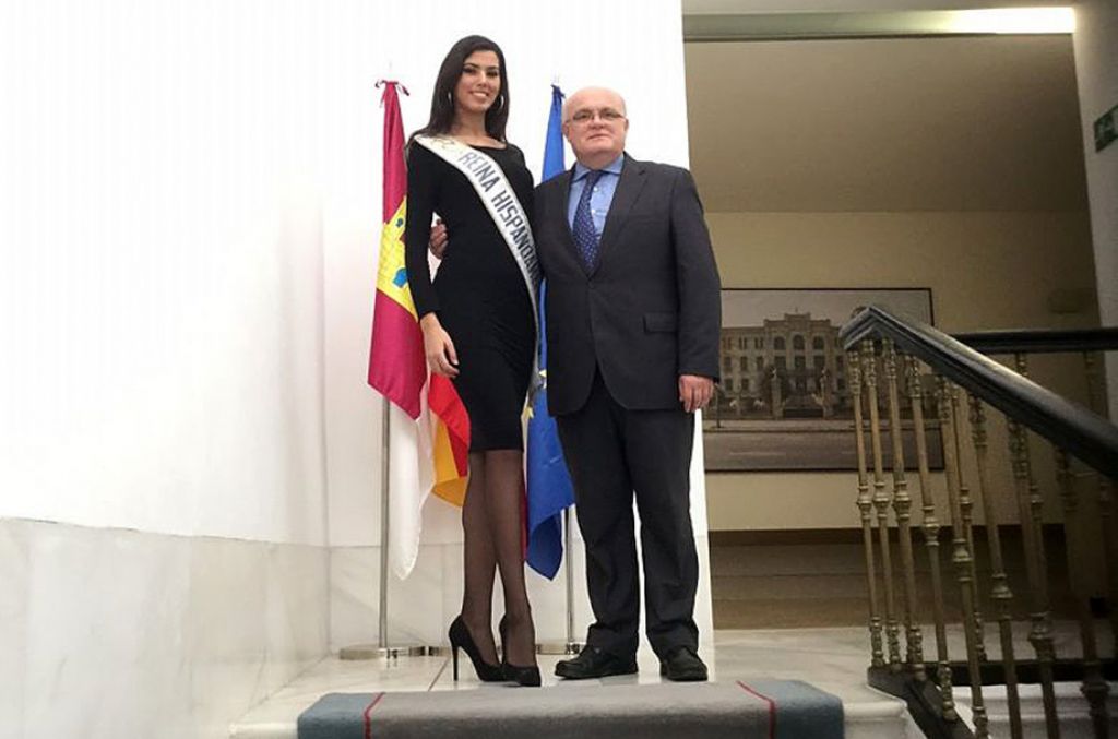 El delegado provincial de la Junta, Pedro Antonio Ruiz Santos ha recibido a la joven modelo en La Casa Perona, para felicitarla tras lograr ser Reina de Hispanoamérica 2015, durante el último certamen celebrado en Bolivia, y en el que participaron 24 candidatas; y finalista Miss Universe Spain.