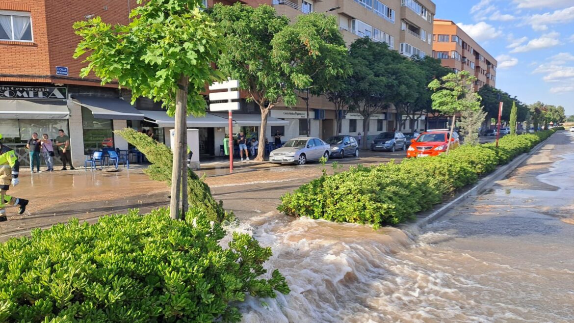 La rotura de una tubería de la red de agua potable por las inmediaciones del Hospital General Universitario ha dejado parte de la Circunvalación y alguna calle del barrio de Medicina con un ‘río’.