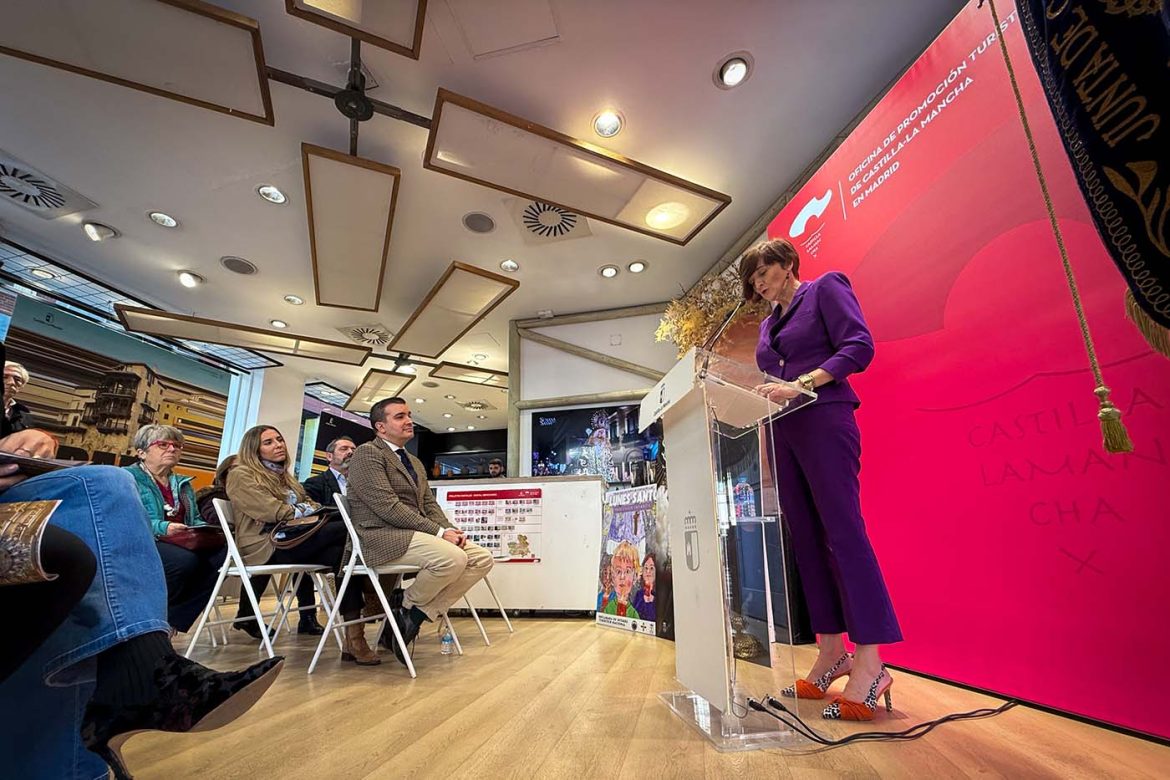 La concejala de Cultura y Festejos, Elena Serrallé, ha presentado esta mañana en Madrid el cartel anunciador de la Semana Santa de Albacete 2026, Fiesta de Interés Turístico Nacional, en un acto celebrado en la Oficina de Turismo de Castilla La Mancha en Madrid.