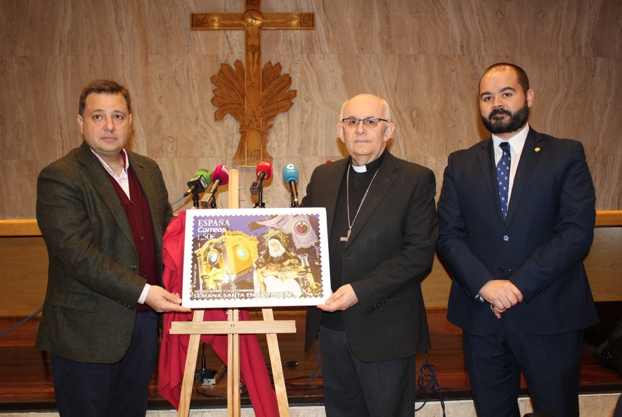 Así lo ha señalado Manuel Serrano durante la presentación oficial del sello de Correos dedicado, por primera vez, a la Semana Santa de Albacete, de 35×24,5 milímetros, un valor postal de 1,50 euros y tirada ilimitada, que ha tenido lugar en el salón de actos del Obispado, acompañado por el obispo de la Diócesis albaceteña, Ángel Fernández, el presidente de la Junta de Cofradías, José Manuel Hernández, y representantes de las 14 cofradías.