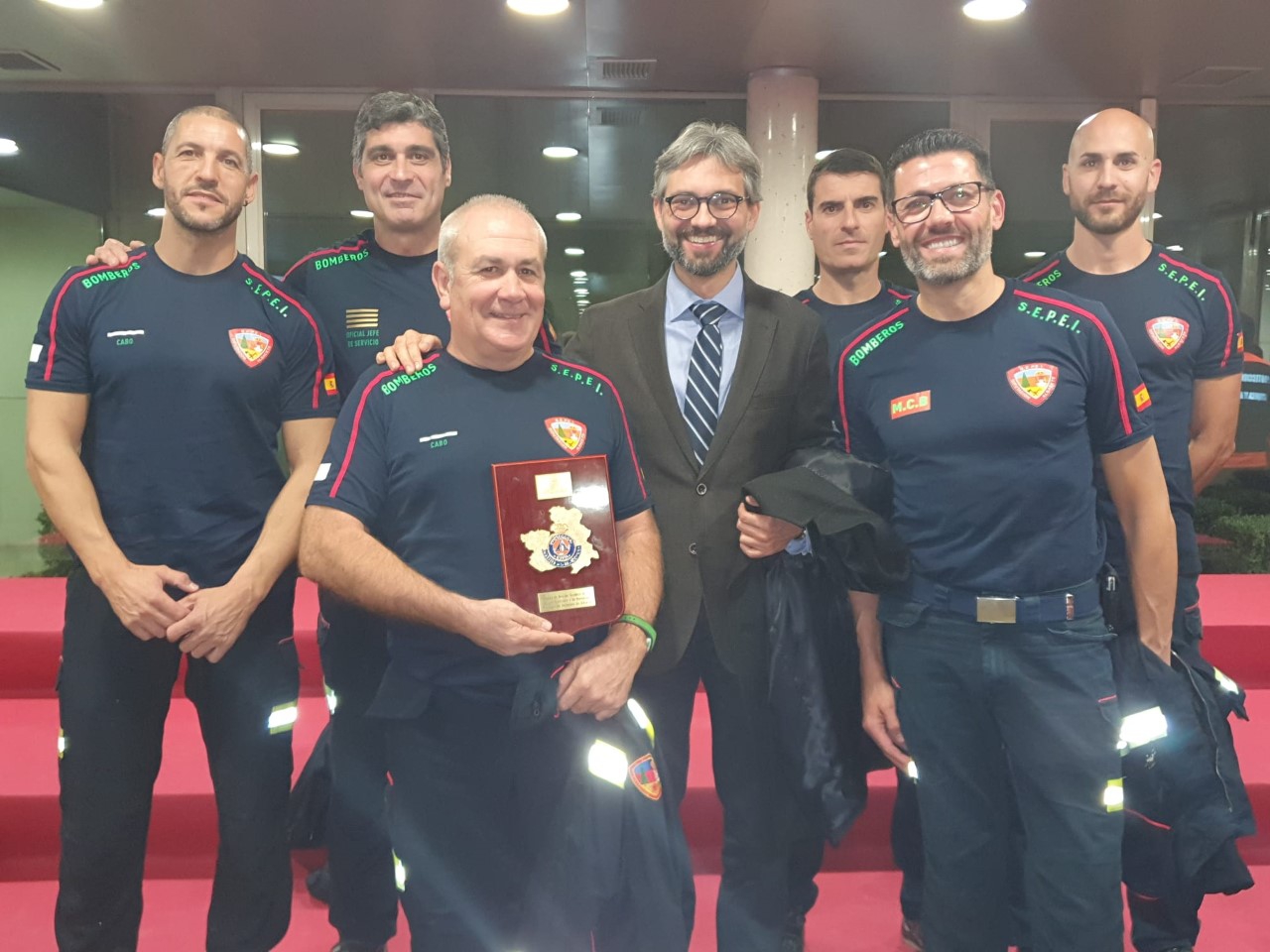 Una delegación de la Diputación de Albacete, encabezada por el diputado provincial del SEPEI, Pedro Antonio González, y por el jefe responsable del servicio, Francisco Ovidio, se ha desplazado a Toledo para recoger, de manos del consejero de Hacienda y Administraciones Públicas, Juan Alfonso Ruiz, una de las 26 placas de ‘Reconocimiento al Mérito de Protección Civil’ que el Gobierno de Castilla-La Mancha entregaba hoy para poner en valor el trabajo de los hombres y mujeres que desarrollan su labor en los diferentes servicios regionales.