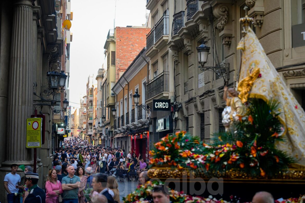 La Patrona de Albacete, la Virgen de los Llanos, ha procesionado esta tarde por el centro de Albacete y se ha vivido esta curiosa imagen, al pasar junto a la Zona.