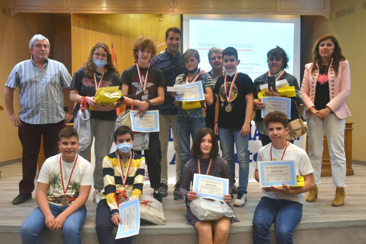 Tras la disputa de la Final (celebrada este 7 de mayo en el I.E.S. Alto de los Molinos de Albacete), el Salón de Actos de la Diputación ha acogido este viernes el acto de entrega de galardones a las y los ganadores de la Olimpiada Matemática de Albacete en sus distintas categorías, de parte del Diputado de Juventud y Deportes, Dani Sancha; de la jefa de Servicio de Planificación de la Delegación Provincial de Educación, Nieves Carralero Colmenar; y de Serapio García en nombre de la Sociedad Castellano-manchega de Profesores de Matemáticas.