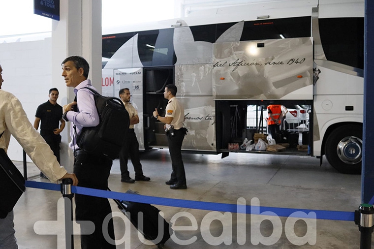 | Staff del Alba por La Rosaleda.- En el campo del Málaga vimos a Luis Casas, segundo de Mauro Pérez, a quien le tocó viajar esta vez. Detrás está también Loles, responsable de Fundación Albacete Femenino. | ![]() |