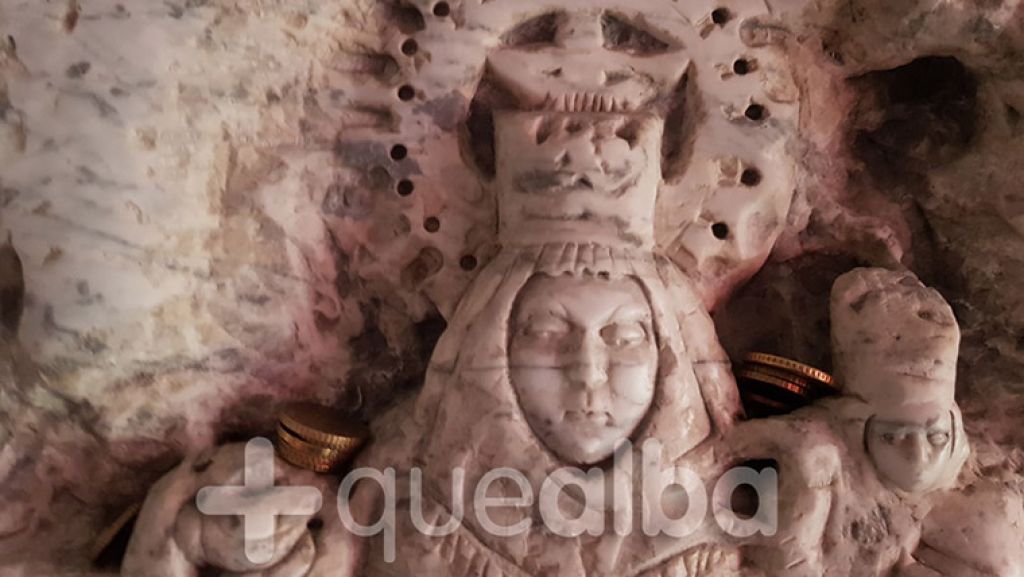 | La Virgen de Covadonga, en El Molinón.- Saliendo del vestuario en El Molinón, se puede ver esta imagen de la Virgen de Covadonga, en la que la gente, además, deposita monedas como ofrenda. | ![]() |