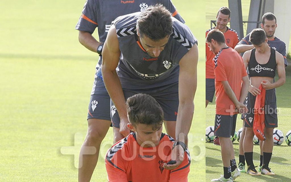 | Gálvez haciendo ‘rueda de reconocimiento’.- Sigue el buen rollo en el Albcete Balompié y así posaba Gálvez, haciendo una rueda de reconociomiento. Pero tranquilos que no ha cometido delito alguno. | ![]() |