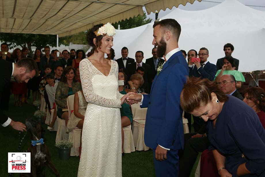 El redactor gráfico Rubén Serrallé, trabajador de La Tribuna de Albacete, y la periodista Lucía Mallol se han dado el ‘Sí, quiero’ esta tarde, en una emotiva ceremonia en la que han estado acompañados por familiares y amigos y, cómo no, por sus ‘peques’, sus dos perros que han acudido también a esta cita de gala. Aunque, eso sí, el novio estaba muy elegante, pero la que ha destacado ha sido la novia, con un sencillo pero elegantísimo vestido y un llamativo y atractivo tocado de flores.