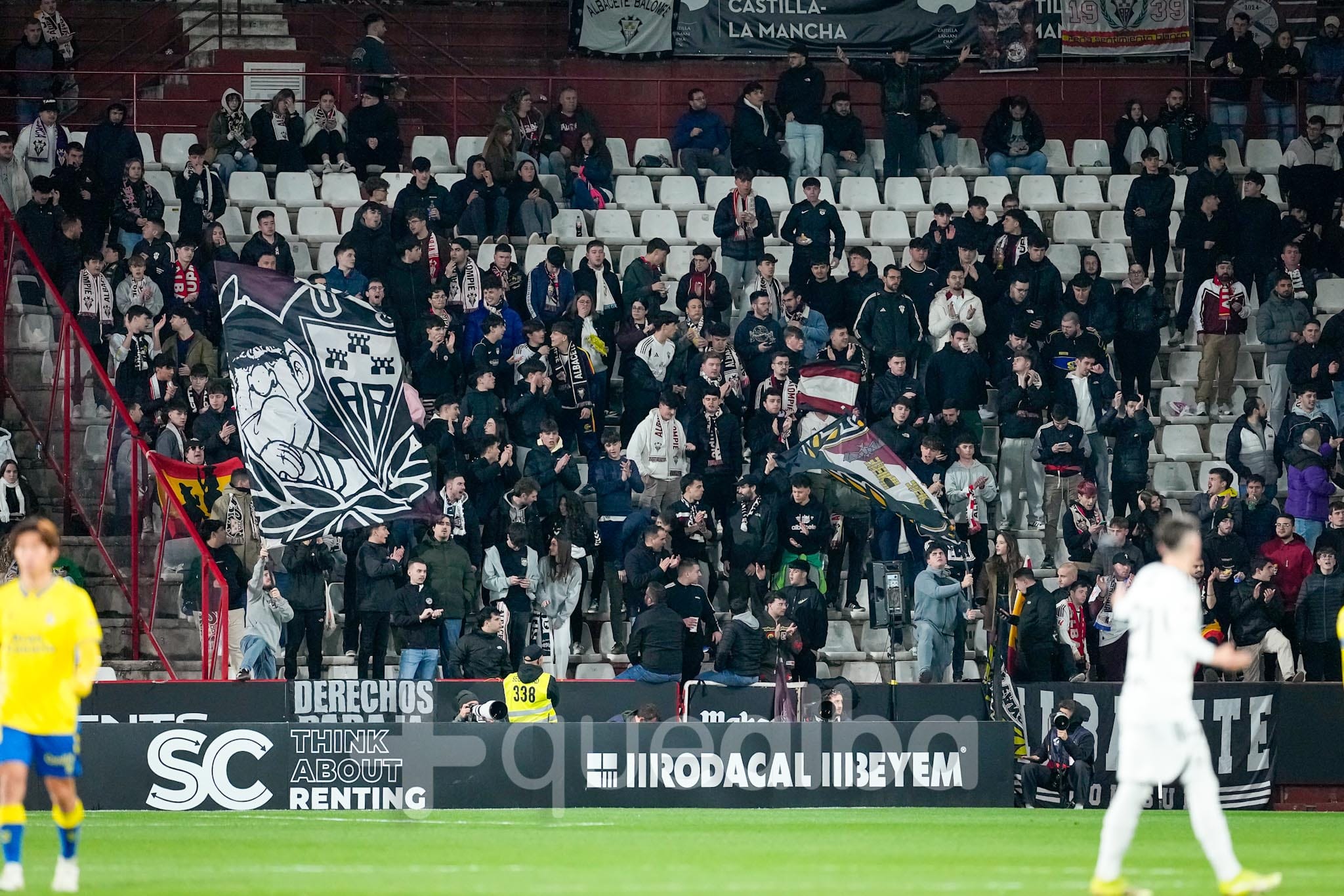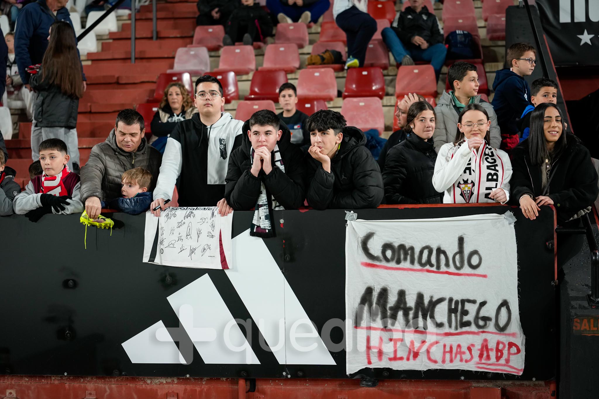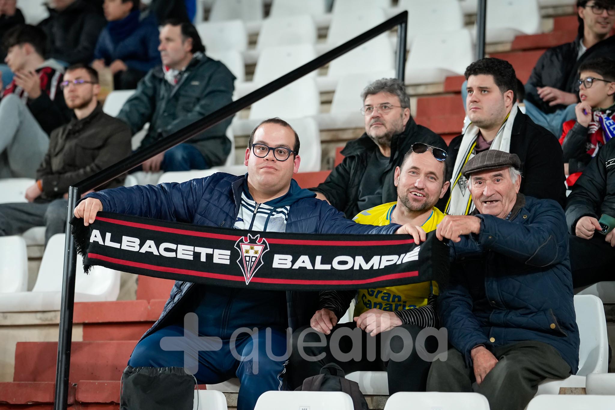 El Albacete Balompié recibía a la UD Las Palmas, con Manu Fuster, en este lunes 16 de marzo en el Carlos Belmonte. Una cita en la que los aficionados de la Grada de Animación no entraron al estadio hasta el minuto 12, para protestar por los horarios que la Liga está imponiendo al club blanco.