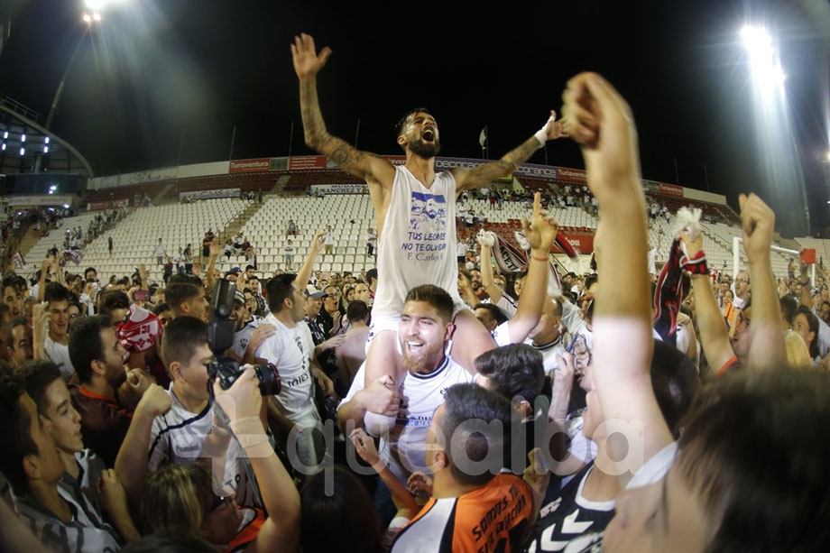 Se conseguía el ascenso y la alegría se desbordaba en el vestuario del Albacete Balompié, donde no ha faltado el mítico Parrita con su bombo para animar a los jugadores y cuerpo técnico.