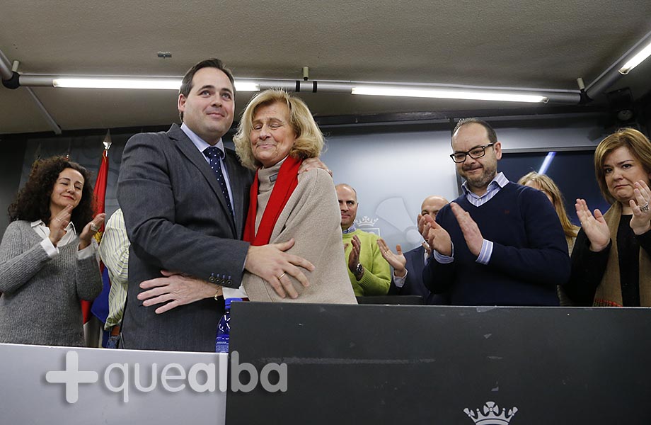 La alcaldesa de Albacete, Carmen Bayod, comunicaba arropada por sus concejales y muy emocionada que no se volverá a presentar a las elecciones por motivos familiares. Su marido estaba también junto a ella en la sala de prensa del Ayuntamiento hasta la que se ha acercado el presidente de la Diputación Provincial, Francisco Núñez, presidente también del PP en Albacete. A sus concejales les hemos visto también visiblemente emocionados en esta comparecencia a la que han ido llegando tras ser convocada con carácter urgente. Antes de ir a la sala de prensa, en el despacho de Bayod se han escuchado los aplausos de sus concejales, imaginamos que cuando les ha comunicado la decisión. Aplauso que se ha repetido al terminar la rueda de prensa.