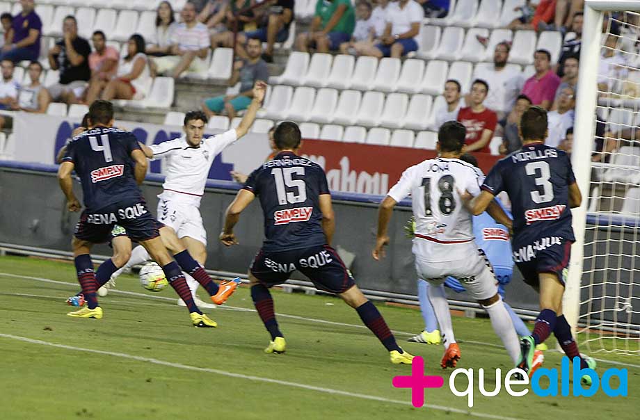 En el minuto 22, Samu realizaba una buena intervención y su disparo rebotaba en Carlos David, que anotaba en propia puerta el 1-0 y ponía por delante al Alba en el Belmonte.