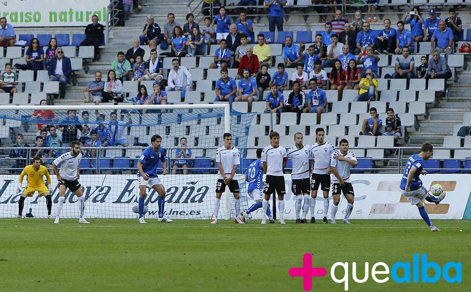 Susaeta adelantó al Oviedo en el minuto 18, en el saque de una falta peligrosa. No dudó el jugador del Oviedo y gran disparo que eludió la barrera del Alba y se metió de lleno en la portería de Dorronsoro, que fue finalmente el portero titular por la lesión de Juan Carlos.
