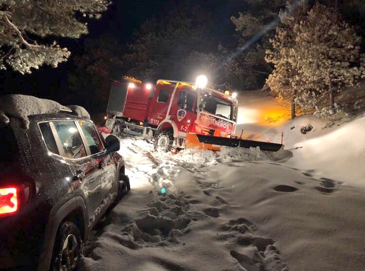 A las cuatro de la mañana, unas cuatro horas después de recibir el aviso, los bomberos del SEPEI pudieron rescatar a una pareja y su bebé que habían quedado atrapados por la nieve en Nerpio. Todos están en buen estado, según informa el SEPEI que ha publicado estas fotografías del rescate.