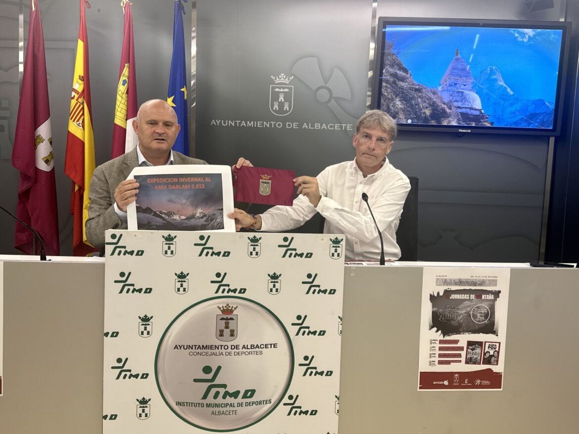 Al término de la rueda de prensa de presentación de las jornadas, el concejal de Deportes ha hecho entrega a Óscar Cardo de una bandera de la ciudad de Albacete, “para que la lleve en su mochila y pueda hacerse una foto con ella cuando haga cumbre”.