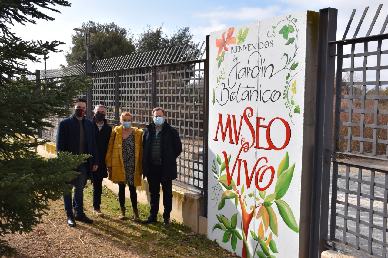 Con su particular caligrafía, el primer mural da la bienvenida a los visitantes, con el lema de “Bienvenidos. Jardín Botánico. Museo Vivo”, que no se queda en un lema, pues los jardines botánicos, y también el de Castilla-La Mancha están considerados auténticos museos, en este caso, un museo de más de 68.000 metros cuadrados.