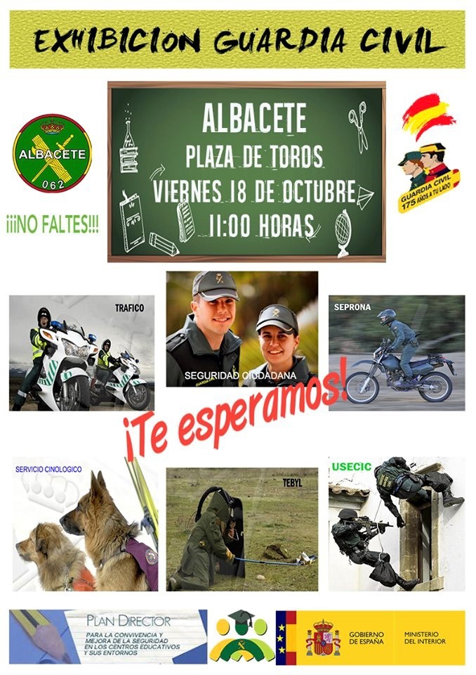 La Guardia Civil realizará una exhibición en la Plaza de Toros, para el alumnado de los centros escolares, en la que participarán las unidades especializadas con las que cuenta este Cuerpo en Albacete.